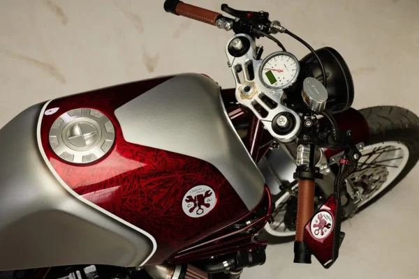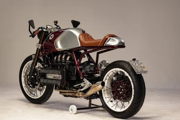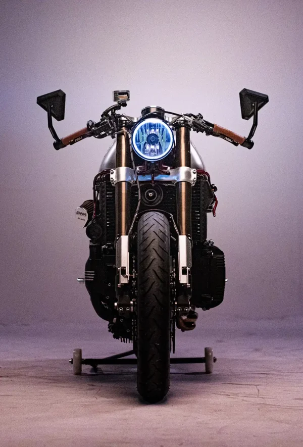 The custom BMW K100 by Custommade C.A. features a unique blend of engineering and design. This bike combines advanced components like a Kawasaki Ninja ZX-10R front-end, custom-built parts, and a House of Kolor paint finish. It incorporates innovative solutions such as a 3D-printed cowl and custom CNC rearsets, ensuring both performance and aesthetic appeal.